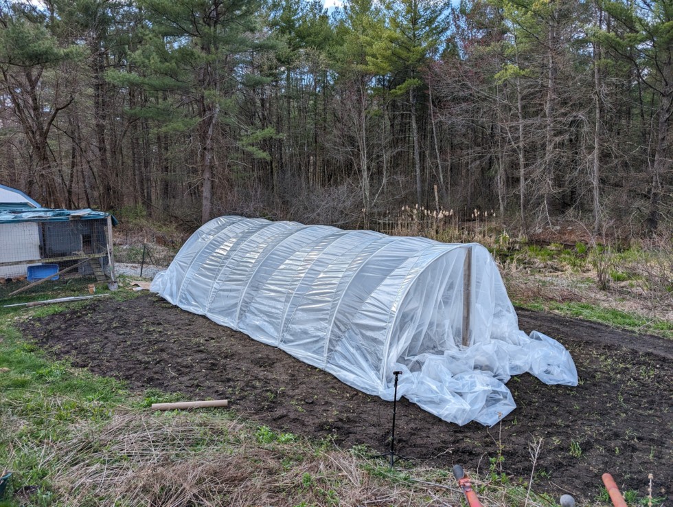Bigger greenhouse got plastic. It's 13ft x 24ft.