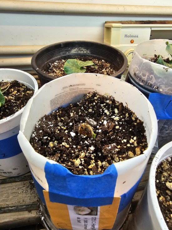 Here it is breaking through. Who'd thought a 15 year old seed would germ.