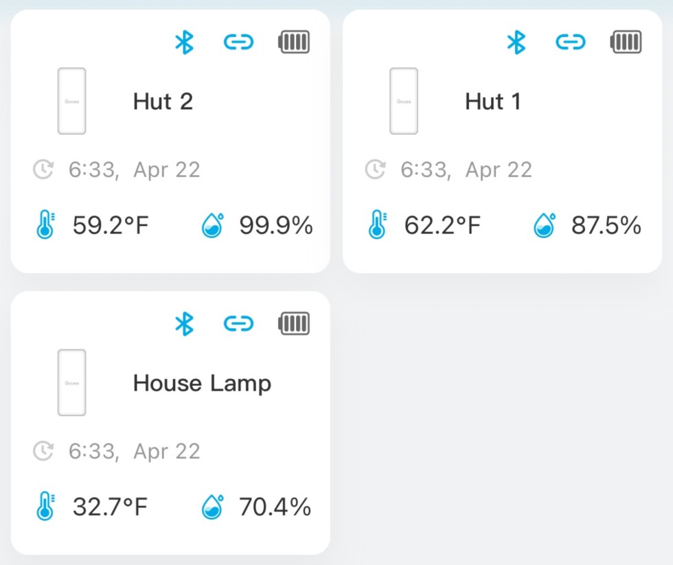 Temps last night were a little chilly with frost noted about everywhere this morning. The probe labeled "House Lamp" hangs under the eve of my residence from an entry lamp. I find this to be a good place to register true outside ambient temperature while limiting the risk of precipitation interference to the probes functionality. The other two sensors are labeled as such for each respective grow hut. I am please to see that my air column for each hut kept toasty over last night's thermal challenge.