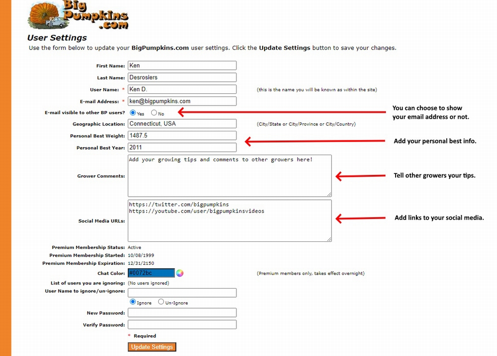 The User Settings form has been updated so you can customize your User Profile page. Go ahead, try it. Let me know if you run into any issues.