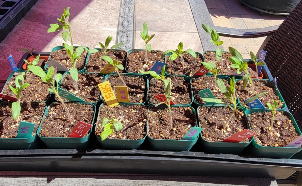 6 days since potting up, ~10 after germination. They're loving the synthetic lighting, temps & potting mix. This afternoon they got a taste of nature in the late afternoon sun/wind. They'll be going into their final homes next weekend.