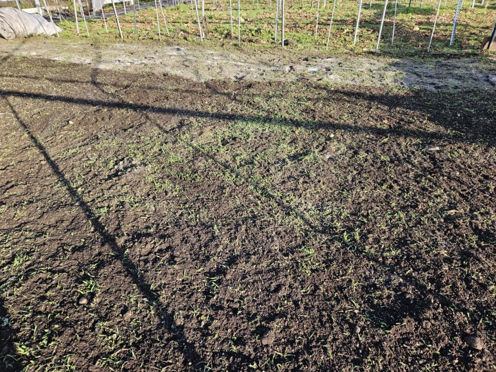 Greenhouse 1 (Gh1) patch will be no-till in 2024. So, I weed-whacked the cover crop down in preparation. I did a lot of reading and studying about how no till benefits the rhizosphere. Singh gh1 is at the end of my row of 4 greenhouses, it'll be the most practical spot to try this approach. Fortune favors the bold
