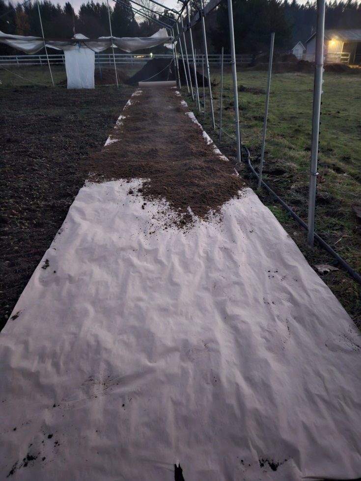 Here it is at the beginning of my hand spreading of 12 yards of material. This was a major workout!