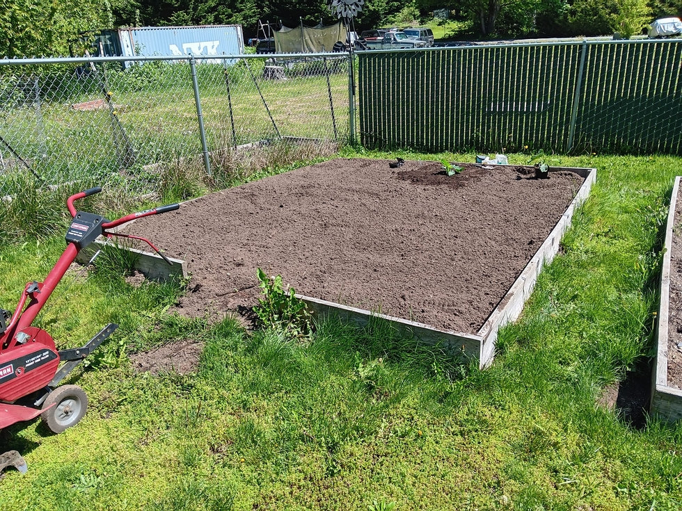 This will be my entry for the 150 square foot contest. The raised bed is 10 feet by 12 feet but I don't want to mess around with enlarging it so I am just going to use the dirt area for the vines and use the 3 feet off the end for the Pumpkin. I might snake a few vines out on the grass in that 3 feet as as well depending on where the pumpkin ends up on the vine.
