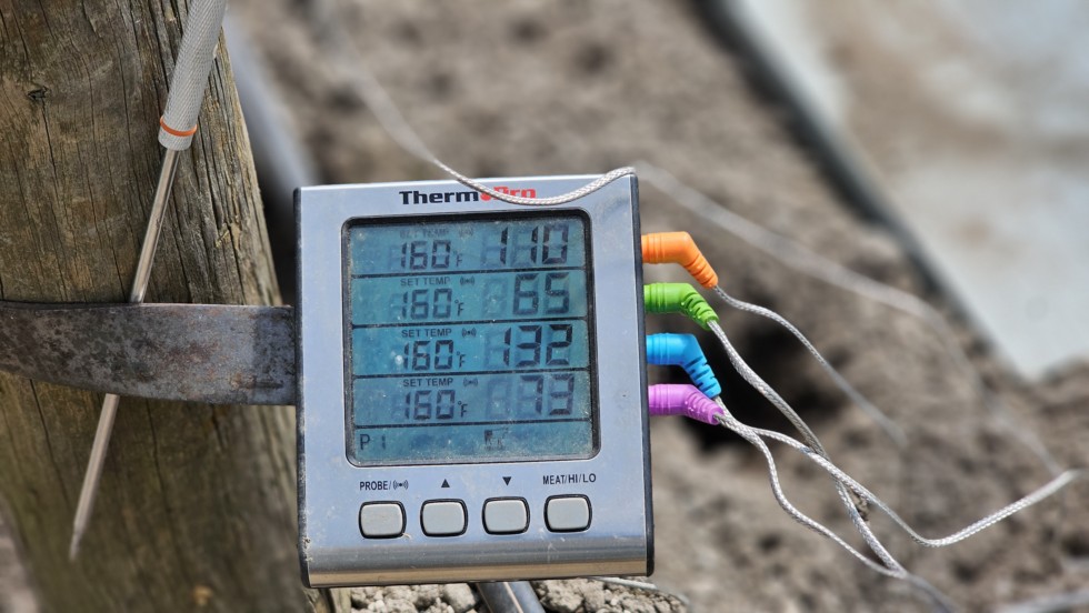 A senior moment. Forgot to open the greenhouse in the morning to attend a breakfast event. By noon the temperature was 115 F. The thermometer says 110 but that pic was 10 min after I opened everything. Also, the exhaust fan was on but clearly not powerful enough. I installed another fan.