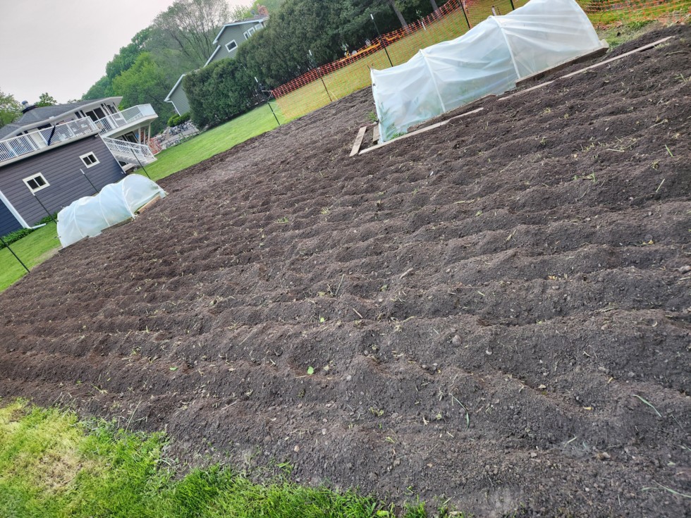 First pass tilling done. Will take my time finishing over the week and hopefully get the drip down and 150 plant in. Tents should be done on Wed.