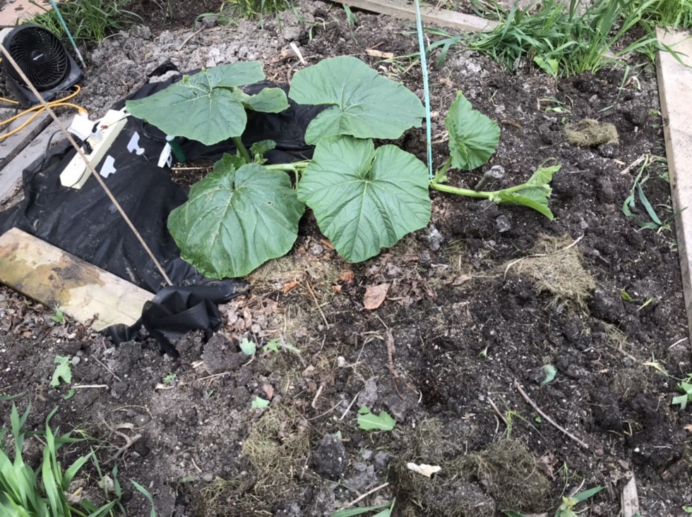 945* Landry 23, landed several days ago. Has had severe flagging at times. Removed from hoop house today and buried the first two internode sections while holding down the tendrils with heavy clumps of loamy clay aggregates. Currently have two fans running. Added a phone app light sensor with moisture sensor and have two temp sensors guarding her. She is pinned down nicely and running. Trimmed off three small crappy leaves. Fed her watery diet treated to 5.5 pH with Apple Cider Vinegar. Also mixed into the drench molasses and two rooting hormones IBA & NAA with 5-15-5. Grow Squash* Grow�