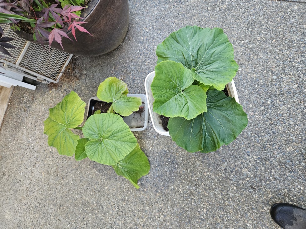 There's a backup plant started 4/15 on top, and my Daho competition squash plant soaked 5/1 and put in a 5 gallon bucket on 5/2. It's only 10 days post germination, and already a pretty good size.