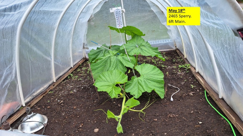 2465 Sperry. was a late planting after the first plant was lost due to frost damage. But its catching up. Main vine on this plant is now 6ft