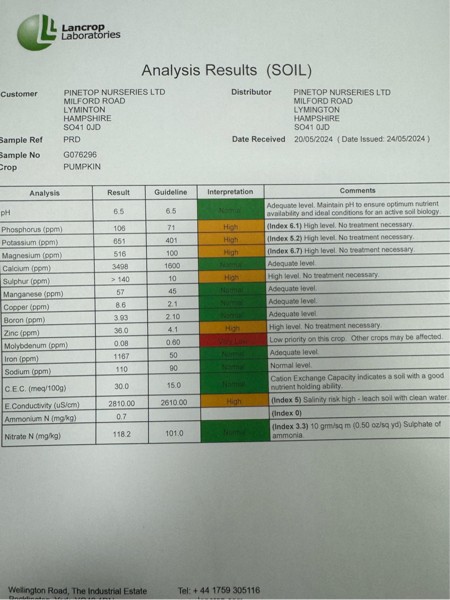 The latest soil sample, that has taken way too long to come back is okay. Nitrogen is to high, Boron is to low, HIGH five on getting the Sulphur up to 140 and magnesium is always bloody high.