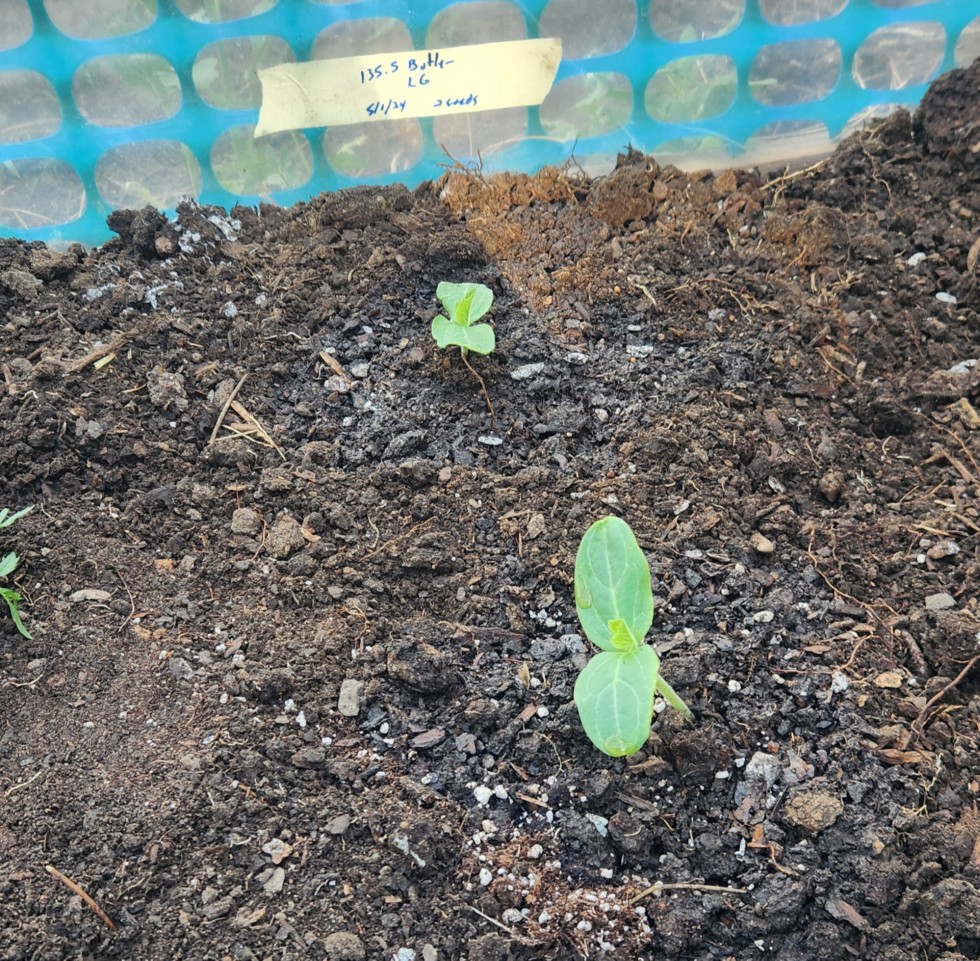 135.5" Butler & 95.5" Grubbs (backup) long gourds transplanted today
