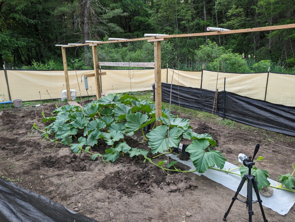 I decided to remove the greenhouse today. The main vine was too long for it, it was getting difficult to bury secondaries, and the number of hours I could supplement with co2 was minimal due to the heat in there (having to keep the ends open). But the co2 and lighting were a huge improvement and the 1832.5 plant is way ahead of previous years.