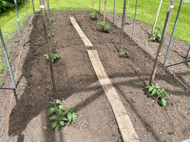 The giant tomatoes have been in the ground for 6 days now and survived the cold spell with no issues. Now it's grow time!