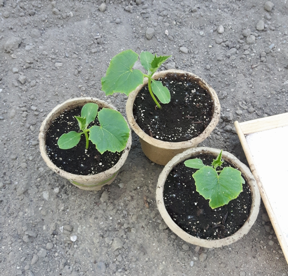 These are my giant cucumber plants. I'm going to plant them in the greenhouse.