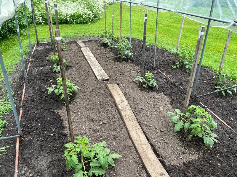 Our giant tomato plants are finally in their growth mode and should really take off once the weather warms up. Some of the stems are thicker than my thumb. Let's hope this is in preparation for a huge tomato!