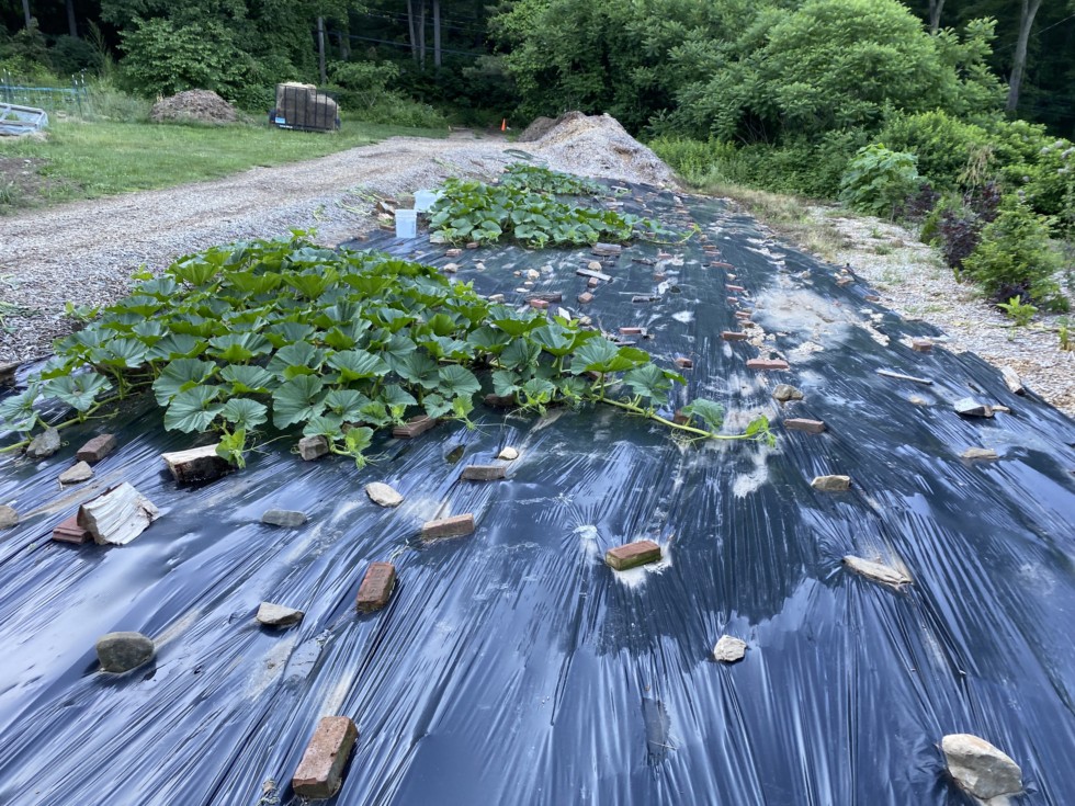 Pumpkin patch. I am happy with their size for this time of year. Three plants in total. About 600 square feet per plant. A 1904 sperry a 1908 Connolly and a 1570 ciesielski.