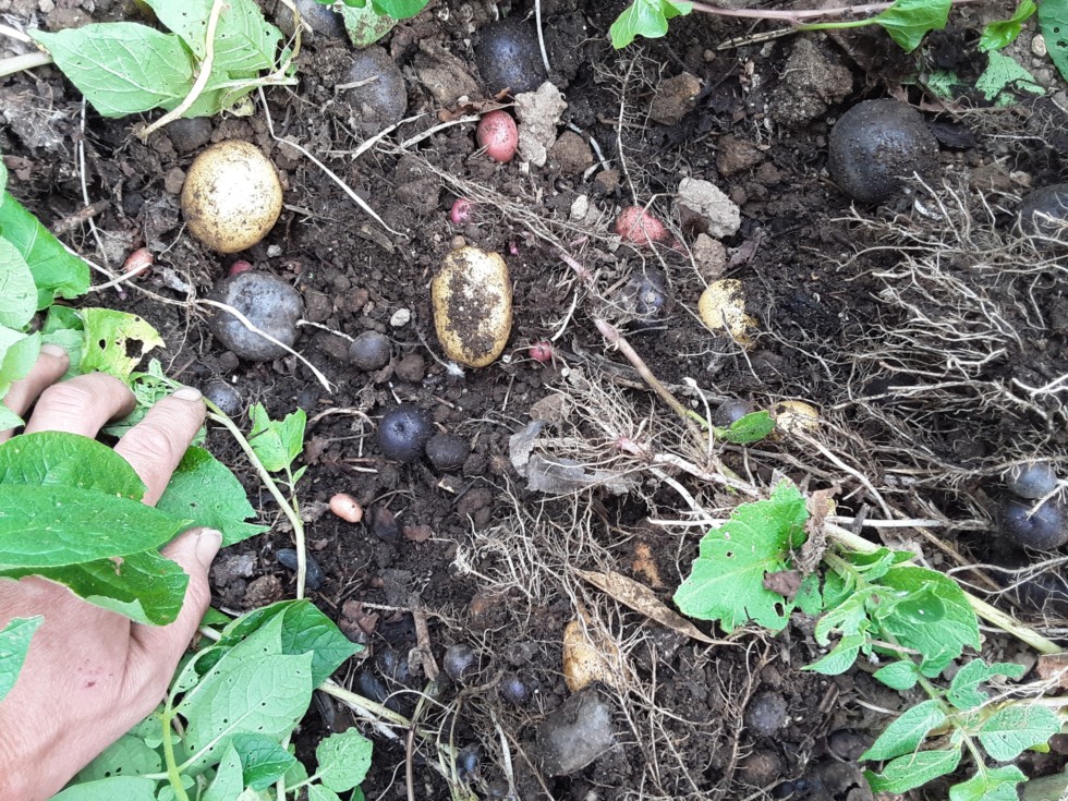 I planted potatoes in the tomato hut. I thought this would be a mistake but I was pleasantly surprised by the productivity. Even though they were only watered once or twice they made a nice crop.