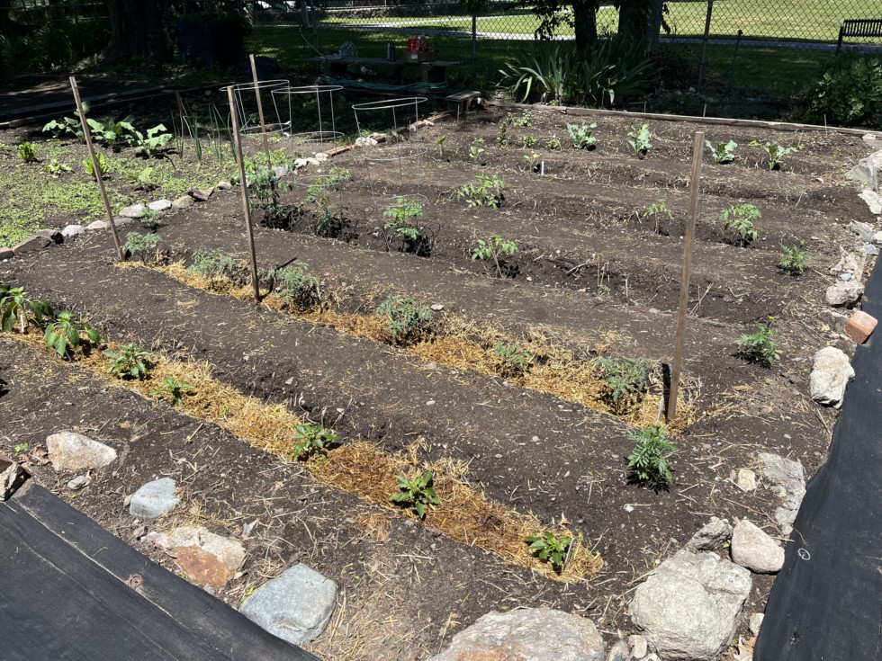We fully weeded the vegetable garden today too and cleaned up debris from yesterday's storm. Added some tomato cages, stakes for the Florida Weave, and used left over mulch. To cut down on weeding we are going to fully mulch the vegetable garden this year-not just the trenches.