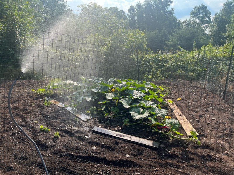 We have a heat wave here as does most of the country. I have dragged my feet on trying the drip tape system but better get it out and see what I can come up with it's getting dry. My pumpkin plants are looking good but will need to keep them watered. I actually had a couple pollinations this morning on my 2198 Haist plant and the 1864 Toboyek. I only had one male for each one so I am not really hopeful. This heat won't help matters either. Here is the Haist.