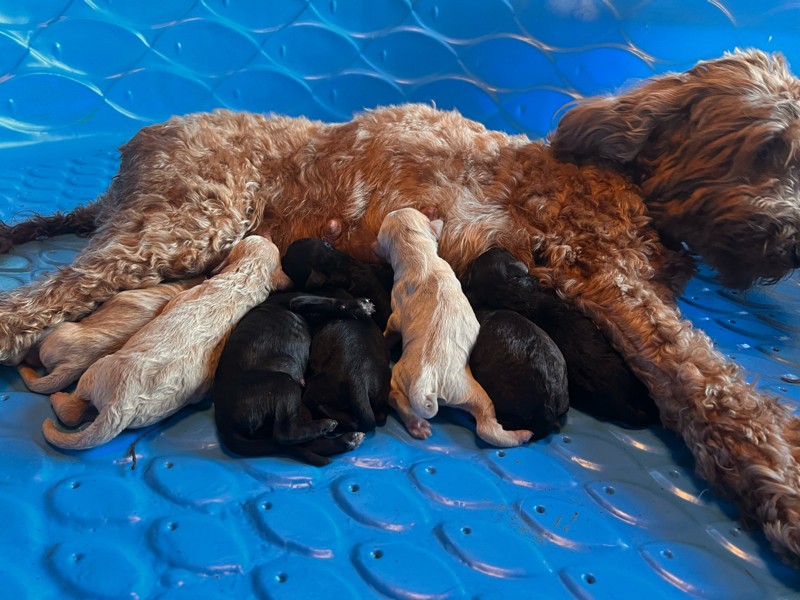 Speaking of Father's Day our Curly Fry got the news that his gal Angel gave him a family that afternoon. 8 healthy Doodles.