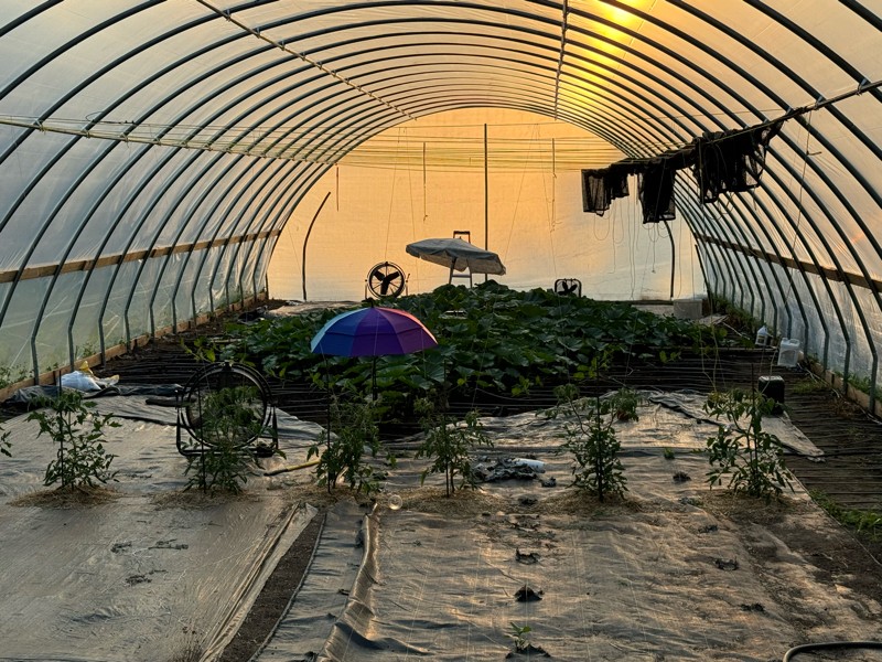 Patch ready for heat wave.Tomato row coming along nicely.