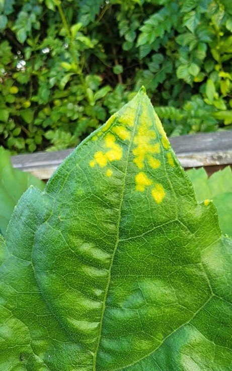 These yellow spots showed up yesterday on the upper leaves of the wide head sunflower. Plant looks great otherwise. Anyone know what it might be from?
