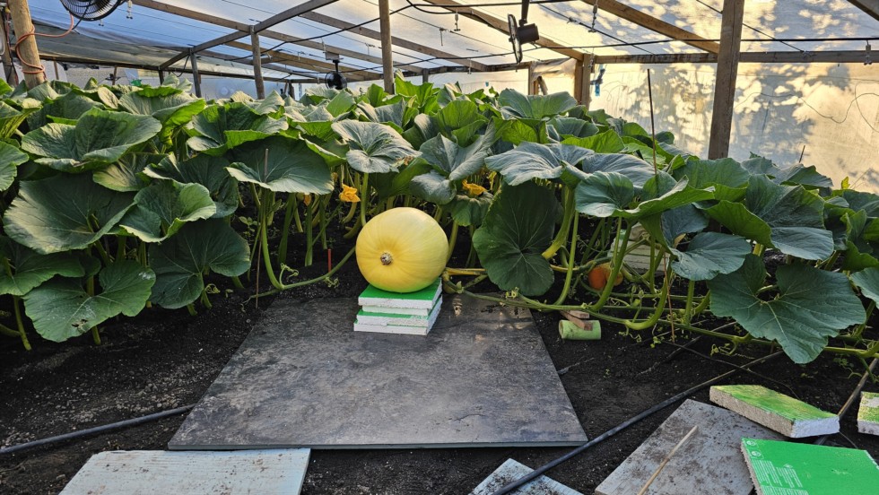 Today we did what I think is the hardest job in growing pumpkins. That is, placing the growing board under the pumpkin when using an "S" bend. Success!! Barron 2404 DAP 18