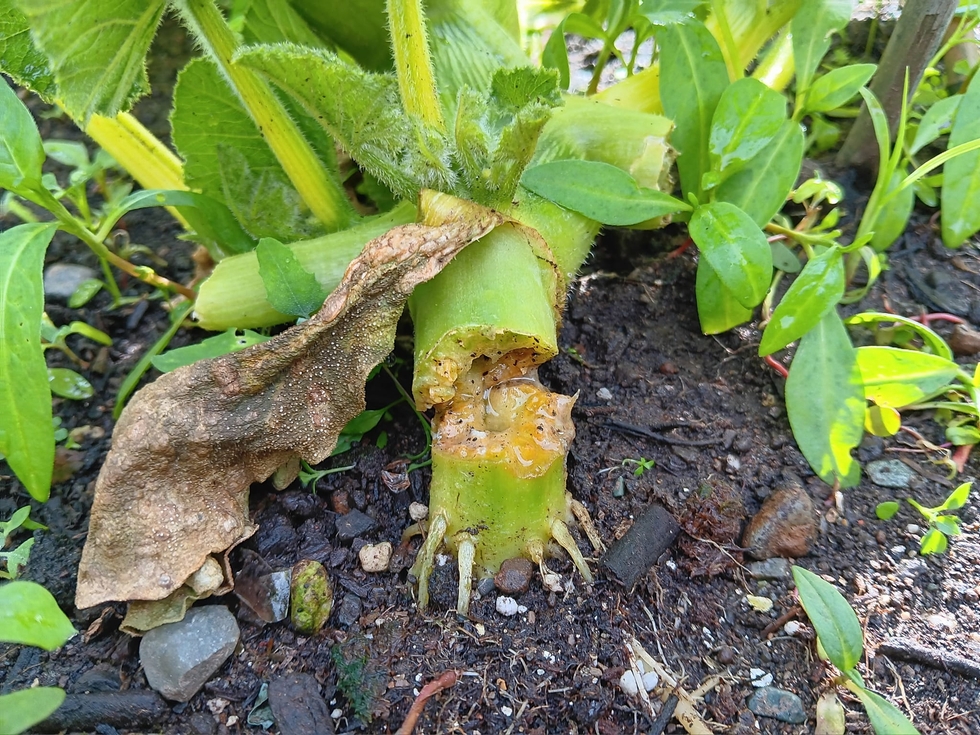The 144 Radach was really puzzling me. It seemed to recover from the storm the other day but every afternoon it would wilt in the sun and then perk up overnight. Today while I was watering I noticed the reason why. The stump was split bad. I think it must have done it in the storm and I just didn't notice it until now. Anyway it's game over for this one.