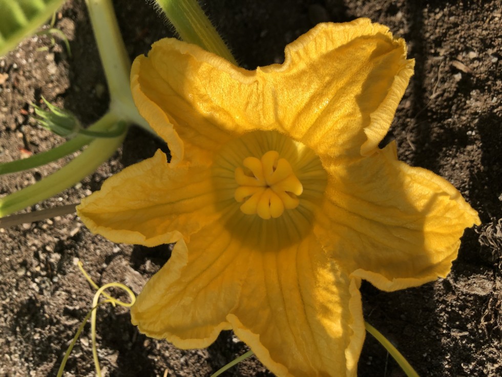 1995.5 Hoornstra (Glenn) just prior to pollination with a ready and eager 839 Sandercock plant. 22 secondaries before this pollination and it appears to be at about 16' on the main vine. Plants look great, weather is better also so all systems appear to be a go.