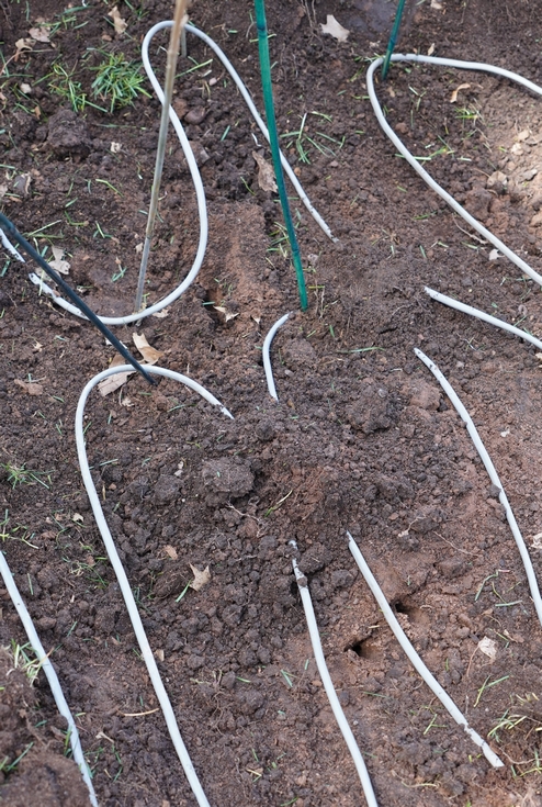 All cables are tested before going into the ground and this not only ensures they are working, but also helps make them easier to bend into the desired pattern. Using some simple bamboo stakes to help with the hair-pin turns and then adding some soil to set them really does make the process easy.