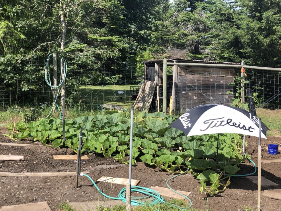 Golf umbrellas in our patch mean only one thing, fish on! 1995.5 Hoornstra X 839 Sandercock looks to be set so we've begun the bending and swinging of the vine to one side. This plant we will try and keep the main vine going and some secondaries afterwards to fill in some space but the other 2 plants will have their main vines terminated after the pumpkins since they are both large enough plants already.