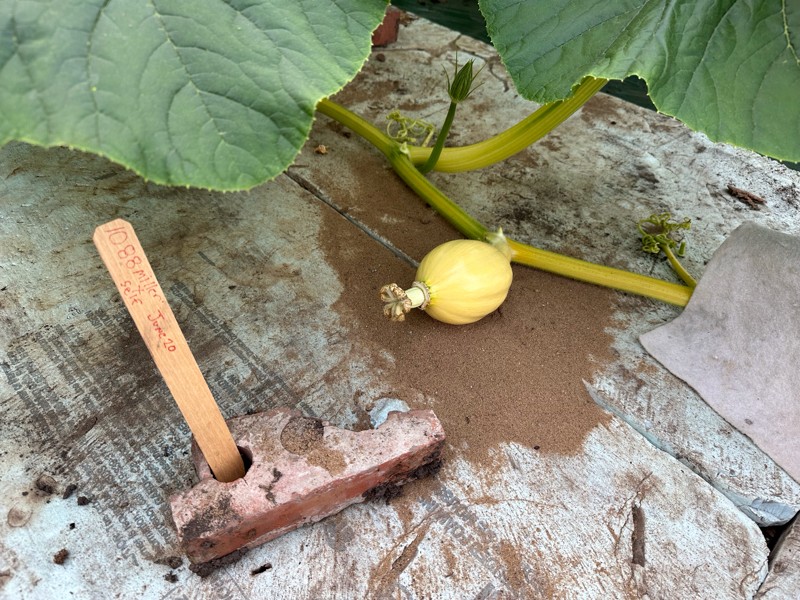 Pretty sure this pollination took though I pollinated the next one too. I usually skip one, that gives me enough time to tell if the pollination took. I like to build the main sink as soon as possible. No additional fruit is allowed to grow. I wasn't sure because of the morning temp that the first one was set.