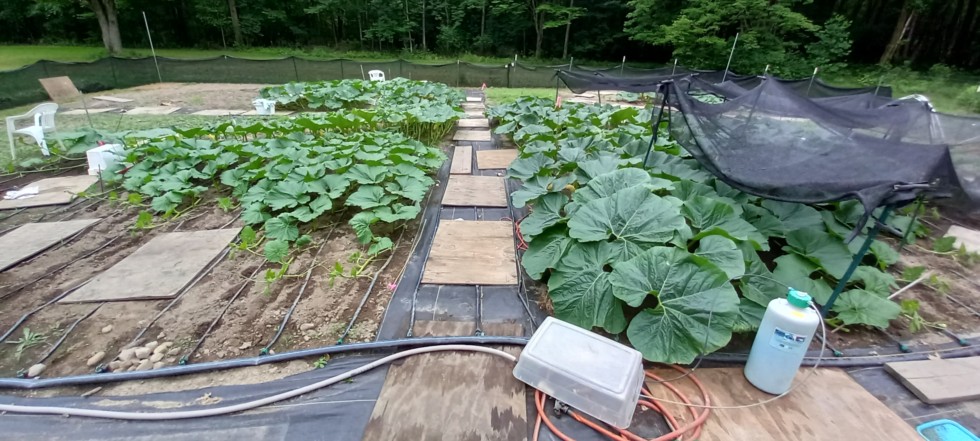 839 Sandercock plant on the right. Left plant is the 1965.5 Rodebaugh. Patch treated the same when amended. The Rodebaugh looks to be a little pale. I gave it some N a few days ago. It has a day 8 fruit on it with a beautiful shape. It is also going to be a nice sized day 10 in 2 days. This plant has a lot of double roots out the bottom if nodes.