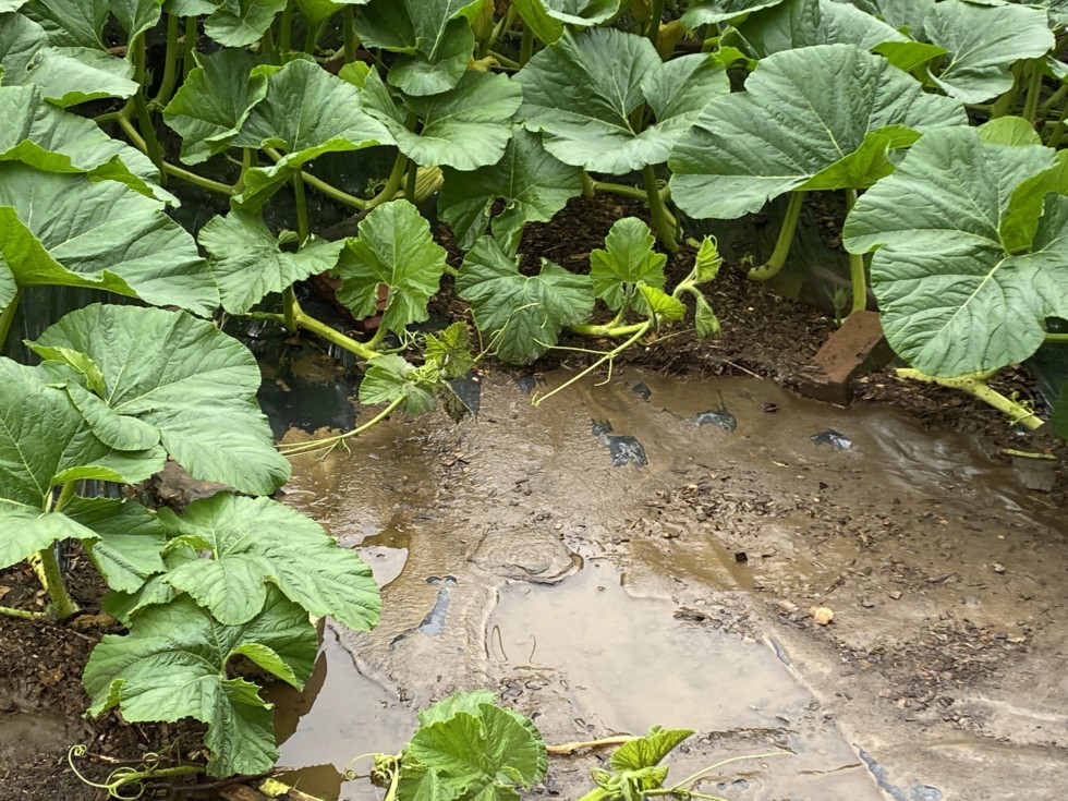 Luckily, not too much silt got washed into Atlantic giant pumpkins. I don't like to see their vines covered with anything. I'll take the bottom root, but I don't even cover the top. My thoughts are that there will be fewer roots but the roots they have can grow bigger and extend, and eventually equal the amount you'd have if you got the top one to root.
