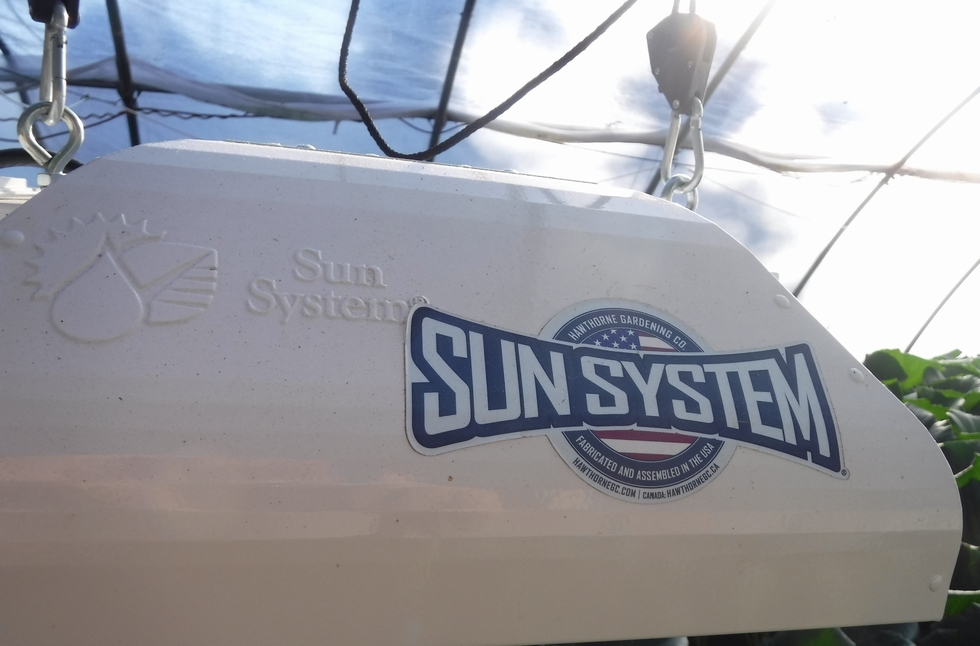 LED lights need to be kept close to the plant to have high PAR (intensity) values and this can cause a shading effect when they are off and the sun is out. Also, the reduced heat they produce is a drawback this time of year as heat is something that is being added anyway so to have it as part of the light, as is the case with the CMH light is an added benefit.