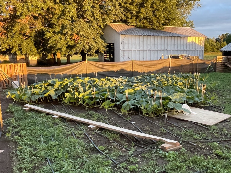 Caught up on vine burying yesterday. Cut off secondary and leaf at both 1908's. Photo is the 1908 in the east patch. Added a little extra phosphate and starting using the 12-12-12 in my bury mix. Not much just a little. Plants are growing nicely. I held of watering Friday and Saturday because of expected rain. It rained 1.5 " Saturday night. Also, saw a few cucumber beetles for the first time this year. There amount 3 weeks late I think. Anyway, gave the plants a dose of Sevin to kill them off. I'll check and see how that worked at noon today. I applied it Saturday morning so the rain probably washed most of it off, but it probably killed what was there. Pumpkins on both 1908 plants are about the same size now. I'll probably start measuring in about 10 days or so. I'll be putting some sand under them today or tomorrow. The150 sf patch is doing well but needs some burying and pruning. I have two pollinated on it. I plan to pick the last pollination since it's in a better location. The plant in the 150 is the 2154 Sperry and is doing well.