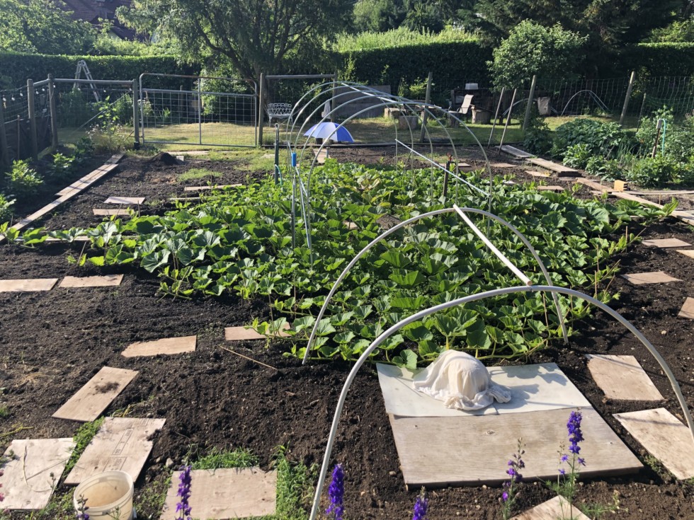 Ned in the foreground got some plywood and mill fabric underneath and I'll put a small layer of fine sand on top of that to help the pumpkin slide as it grows. Hooptie weather structure is in place and will get a roof sometime soon while Dave in the distance only rates a golf umbrella at this point. Ned has finally ramped it up and done 5� in circumference for the last 2 days while Dave is stuck in low gear and only doing 2.5� a day in circumference for the past few days. We expect that to all change as the weather is great right now and only looking better in the next few weeks.