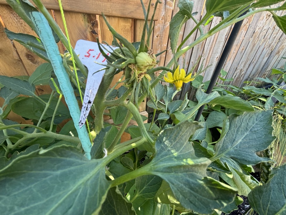 Big Mater first truss set on the 5.14 Landry 23. Really large stem on a single terminated vine. Amino acid fruit influence or something else? The fruit appears to be the only apical growth point. Never seen this before. Have others maters in somewhat similar condition.