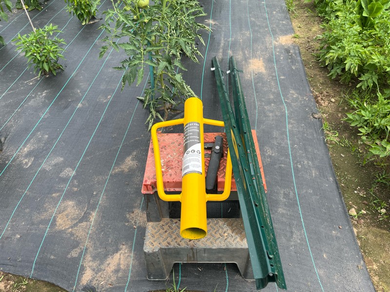 Today's project: put up a support for the tomato plants since my initial megas did not set.