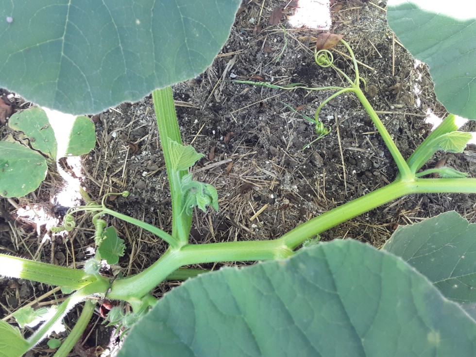 I think these are both nutritional. I think they are related to some minerals not being available in low ph soil. But vining plants will often twist their vines around as they seek something to grow on. So its tempting to say its just natural. It might be both. The plant might interpret low minerals as a sign that it is starving and the only way for a plant to avoid starving is to send the roots more energy and the only way to send the roots more energy is to climb higher to where there is more sunlight. On the other hand if the plant is well supplied with nutrients it wont get that nutritional signal to twist and climb? So all of this could be pro-adaptive, and generally anything pro-adaptive cannot be readily dismissed, no matter how kooky or farfetched as it may outwardly appear.
