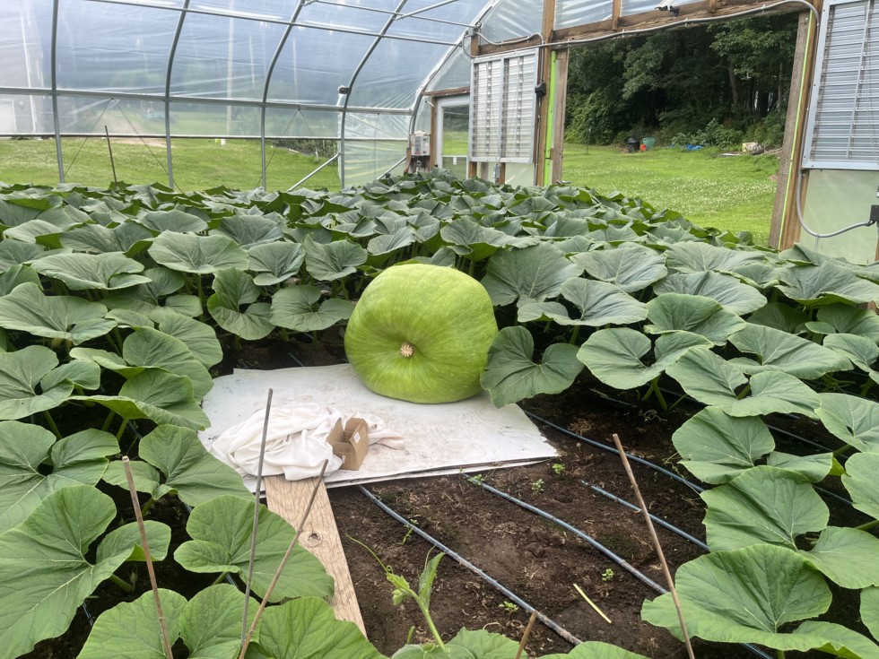 1109 Sq 23 dap 239 lbs doing 33 lbs per day. Growing 720 Sq Ft inside green house. Going to be a high wheel of a fruit with the six lobes it has.