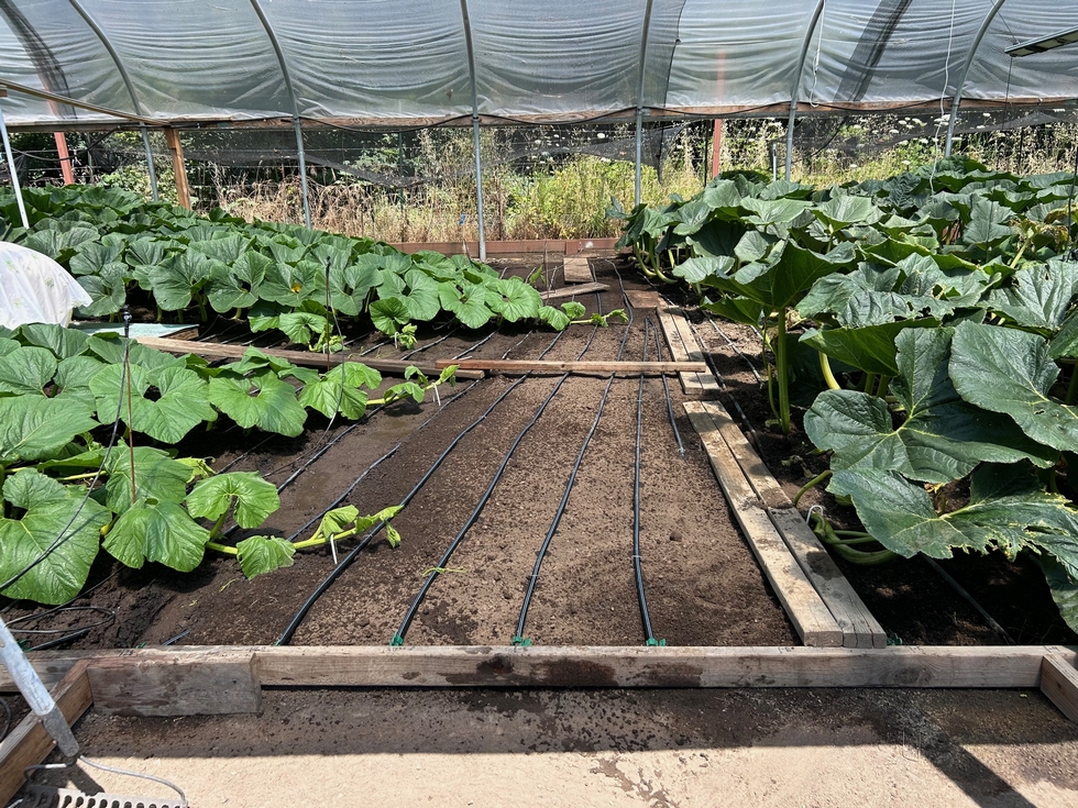 This is what I did! I tore out the first secondary on each side of the 1620 Pritchard plant, which I had �swooped backward.� This gives the 2501 plant another 150 square feet to grow vines. This was an easy decision for me. New roots are �hungrier� than old roots, so I think this extra space to grow more roots & leaves will benefit The Slunger more than it will hurt the 1620 Pritchard fruit. If I'm going to get this baby up to 2880 pounds, it is going to need all the leaves & roots it wants to grow!