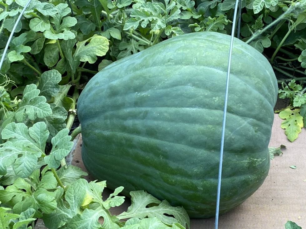 167 Holloway melon photo from the side. slowly, but surely it is starting to fill out its stem end. I am optimistic that it will be a symmetric melon by the end of the season