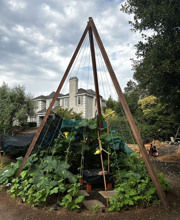 Hidden Temple � The scarlet runner pole beans haven't shown their colors yet but should light up Amelia's hiding place in center of the tepee when they start to glow. If everything goes to plan, I shouldn't have to move the tripod when Amelia wants a lift...