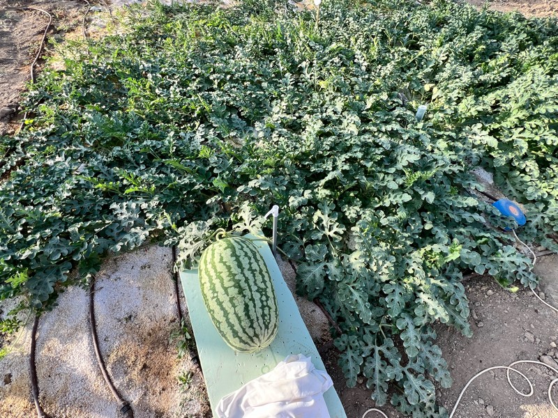 It is growing in the first tertiary of the first fat secondary.. it is the only watermelon that had a good shape. I have pruned the entire plant, except for several tertiary from that secondary, trying to get the plant to send energy to that area.