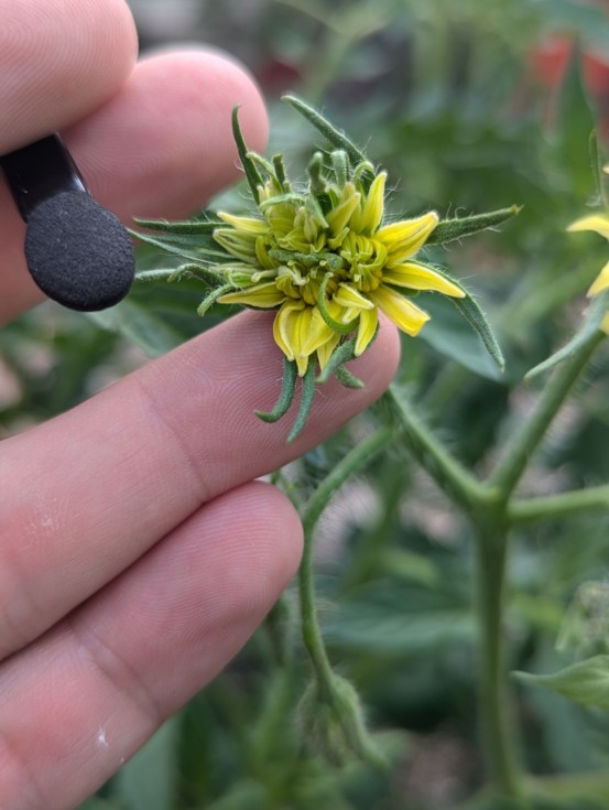 This is another Megabloom on the 9.06. infact it is right next to the other one. It IS facing down and might of self pollinated. You can see how it grows weird and doesn't put the anther cones (yellow parts where the pollen comes from) right next to the stigma like a normal flower.