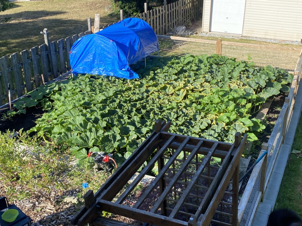 The patch has filled in nicely. After being away and no vine maintenance done, it took awhile to tend to the patch. The pumpkin is making steady gains - nothing huge if it continues it will still be more than last years at the same DAP.
