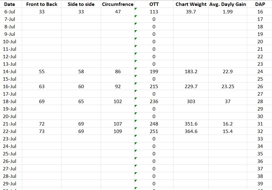 Growth Charts and spreadsheets. 2024 - 1908 Connolly, DAP 32, 364lb.