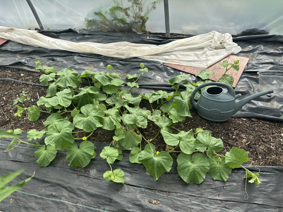 Plants - 76.12 Prochaska pictured - sown 1st June, have put on a spurt of growth with a sunnier spell. Some baby female flowers appearing. Aiming for end Sept.