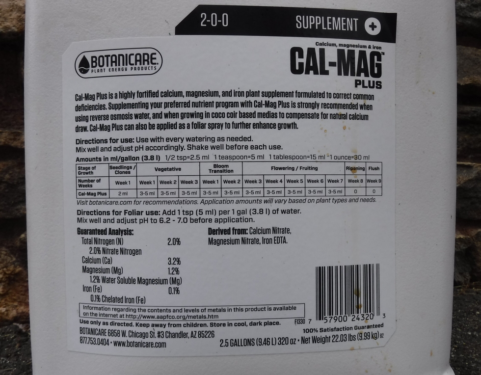 Botanicare Cal-Mag Plus 2-0-0 SDS : https://www.botanicare.com/documentation/cal-mag-sds/